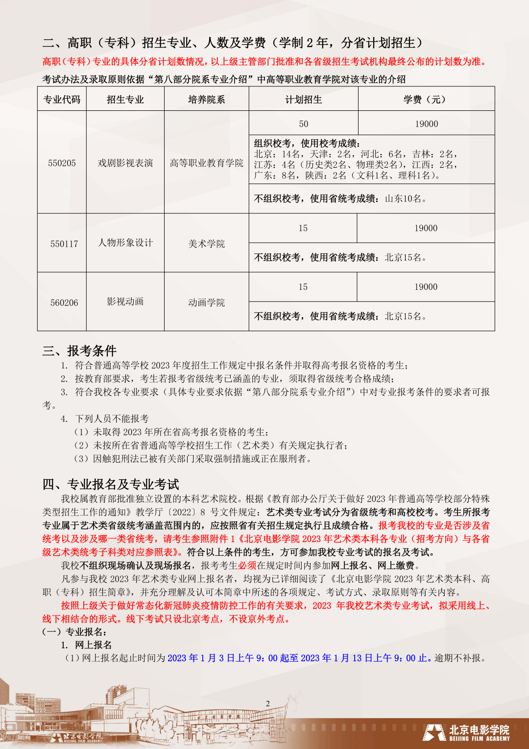 北京電影學(xué)院 2023 年藝術(shù)類本科、高職(??疲┱猩喺?/strong>