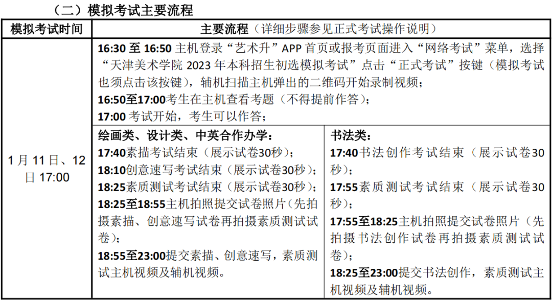 (一)模擬考試時(shí)間安排及注意事項(xiàng)1.模擬考試開始時(shí)間第一場(chǎng)模擬:2023年1月11日(周三)晚上17:00第二場(chǎng)模擬:2023年1月12日(周四)晚上17:00第三場(chǎng)模擬:2023年1月12日(周四)晚上19:00