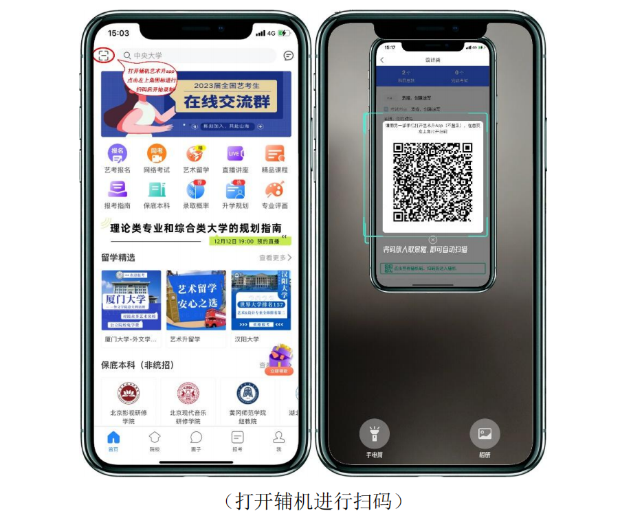 (三)考試設(shè)備及網(wǎng)絡(luò)1.考生須提前準(zhǔn)備好至少兩部智能手機(jī),為確保網(wǎng)絡(luò)考試順利進(jìn)行,建議考生使用最近 3 年上市的主流品牌手機(jī)(如 iPhone、華為、小米、vivo、OPPO),在模擬考試前須登錄“藝術(shù)升”APP 點(diǎn)擊網(wǎng)絡(luò)考試進(jìn)行設(shè)備檢測(cè),確保手機(jī)能夠正常使用;2.每部手機(jī)須保證至少 20G 的剩余可用存儲(chǔ)空間,以保證在考試過程中不會(huì)發(fā)生因?yàn)槭謾C(jī)存儲(chǔ)空間不足導(dǎo)致錄制中斷、錄制內(nèi)容丟失的情況;3.考試前務(wù)必移除兩部手機(jī)的SIM卡,確保沒有通話功能,關(guān)閉除“藝術(shù)升”APP外其他全部應(yīng)用程序,避免外界干擾影響考試;4.考試期間系統(tǒng)會(huì)發(fā)出語音指令,請(qǐng)考生提前調(diào)高手機(jī)媒體音量;5.保持手機(jī)電量充足,須準(zhǔn)備好電源和移動(dòng)電源,確保在考試過程中不會(huì)出現(xiàn)因?yàn)槭謾C(jī)電量過低而自動(dòng)關(guān)機(jī)、錄制內(nèi)容丟失的情況;6.使用手機(jī)固定器(建議使用手機(jī)支架),確保拍攝畫面穩(wěn)定;7.選擇具有較強(qiáng)、穩(wěn)定的 WIFI 信號(hào)網(wǎng)絡(luò),確??荚嚾叹W(wǎng)絡(luò)環(huán)境正常,避免出現(xiàn)斷網(wǎng)情況影響正??荚嚵鞒?。