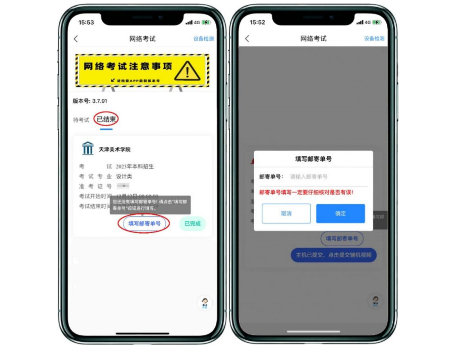 11.郵寄試卷、填寫快遞單號(hào)主機(jī)視頻和輔機(jī)視頻均提交后,考試完成。考生須在考試當(dāng)天下午17:00前通過郵政EMS郵寄試卷,并在“網(wǎng)絡(luò)考試”頁面點(diǎn)擊“已結(jié)束”,填寫快遞單號(hào)。