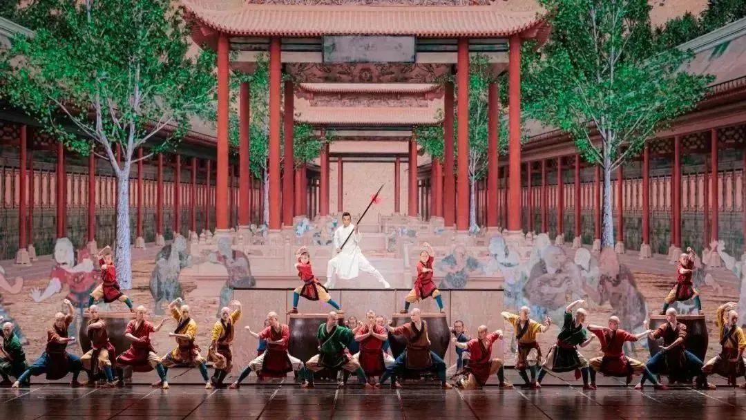 創(chuàng)意節(jié)目交互視覺秀《滿庭芳·國色》從自然萬物、天地四時(shí)中追尋中國傳統(tǒng)色彩,運(yùn)用AR技術(shù)使舞臺(tái)宛如色彩幻境,同時(shí)以現(xiàn)場(chǎng)實(shí)時(shí)拍攝結(jié)合CG特效、AI圖像生成等制作技術(shù),將中華傳統(tǒng)色彩賦予五位舞者演繹。創(chuàng)意節(jié)目《當(dāng)神獸遇見“神獸”》以《山海經(jīng)》《抱樸子》《史記》等中國古典典籍中的吉祥神獸為原型,結(jié)合VR三維影像繪制和AR增強(qiáng)現(xiàn)實(shí)等技術(shù),讓上古神獸“走出”文獻(xiàn)古籍,與現(xiàn)代生活中的孩子們奇妙相遇。攝影:賈寧旨武術(shù)節(jié)目《演武》創(chuàng)意源自200年前的古畫《武僧演武圖》,為少林寺定格了氣勢(shì)磅礴、精彩絕倫的瞬間。節(jié)目結(jié)AR技術(shù)帶我們穿越入畫,夢(mèng)回千年少林。攝影:賈寧旨