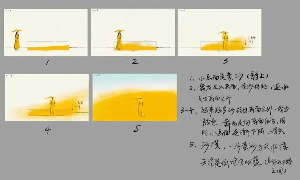 如何讓視覺成為表演的有力支撐,如何與舞臺(tái)上的各種元素形成協(xié)調(diào)統(tǒng)一的表達(dá)是視覺創(chuàng)意過程中的重要挑戰(zhàn)。視覺團(tuán)隊(duì)的視覺導(dǎo)演與各個(gè)節(jié)目主創(chuàng)在內(nèi)容創(chuàng)作前期就開始深入的視覺創(chuàng)意研究,讓視覺內(nèi)容成為表演者,融入每個(gè)節(jié)目的原生語匯,而不只是為表演做背景,視覺與表演者成為一體,共同出演;大屏幕上的視覺內(nèi)容還能成為表演者的支撐要素,而不是變?yōu)楦蓴_表演的另外一張皮。有些節(jié)目的視覺方案經(jīng)歷了多達(dá)數(shù)十版的調(diào)整,這些調(diào)整一方面來自于純粹的視覺創(chuàng)意的優(yōu)化;另一方面因?yàn)楣?jié)目?jī)?nèi)容本身也在經(jīng)歷不斷的調(diào)整變化,甚至于顛覆。視覺創(chuàng)意及制作團(tuán)隊(duì)經(jīng)歷無數(shù)個(gè)不知疲倦的日夜,不斷深化打磨直至最后一刻,為整場(chǎng)晚會(huì)視覺品質(zhì)的提升竭盡所能。創(chuàng)意節(jié)目交互視覺秀《滿庭芳·國色》《滿庭芳·國色》初期節(jié)目創(chuàng)意手稿今年春晚選擇以“花”作為貫穿整臺(tái)晚會(huì)的舞美主題符號(hào),以“滿庭芳”作為舞美設(shè)計(jì)核心理念,這一理念貫穿在演播大廳從空間、舞臺(tái)到景觀等各個(gè)方面的設(shè)計(jì)之中。其中由四瓣花結(jié)構(gòu)演化重構(gòu)而成的演播廳頂部藝術(shù)裝置,既是根植于中華文明的美學(xué)創(chuàng)造,又是綻放著現(xiàn)代設(shè)計(jì)理念的創(chuàng)新呈現(xiàn)。創(chuàng)意取材自距今6000年至4800年前的廟底溝彩陶標(biāo)志性的“花瓣紋”,著名考古學(xué)家蘇秉琦先生曾提出:花卉圖案彩陶,可能就是華族(即華夏民族)得名的由來。