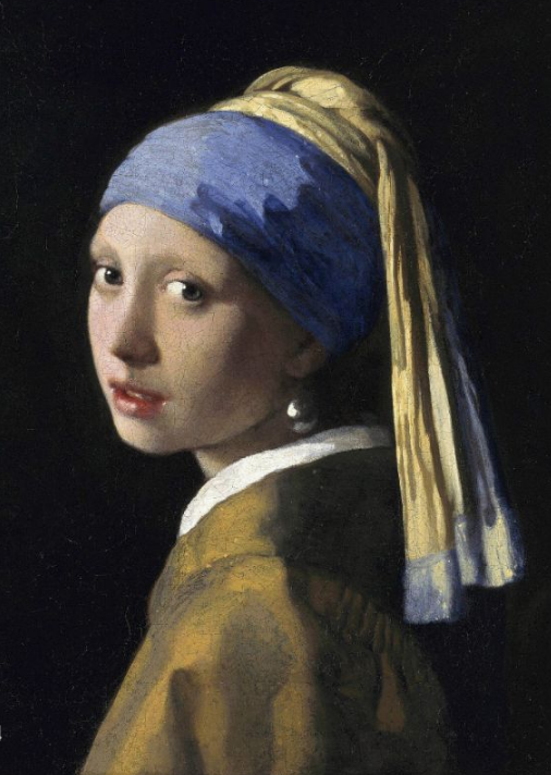 畫面另一個(gè)令人矚目之處,在于少女左耳佩戴的一只淚滴形珍珠耳環(huán),在少女頸部的陰影里似隱似現(xiàn)。既是點(diǎn)睛之筆,也有特殊寓意。珍珠在維米爾畫中常象征貞潔,因此有專家認(rèn)為該畫很可能畫于少女成婚前夕。