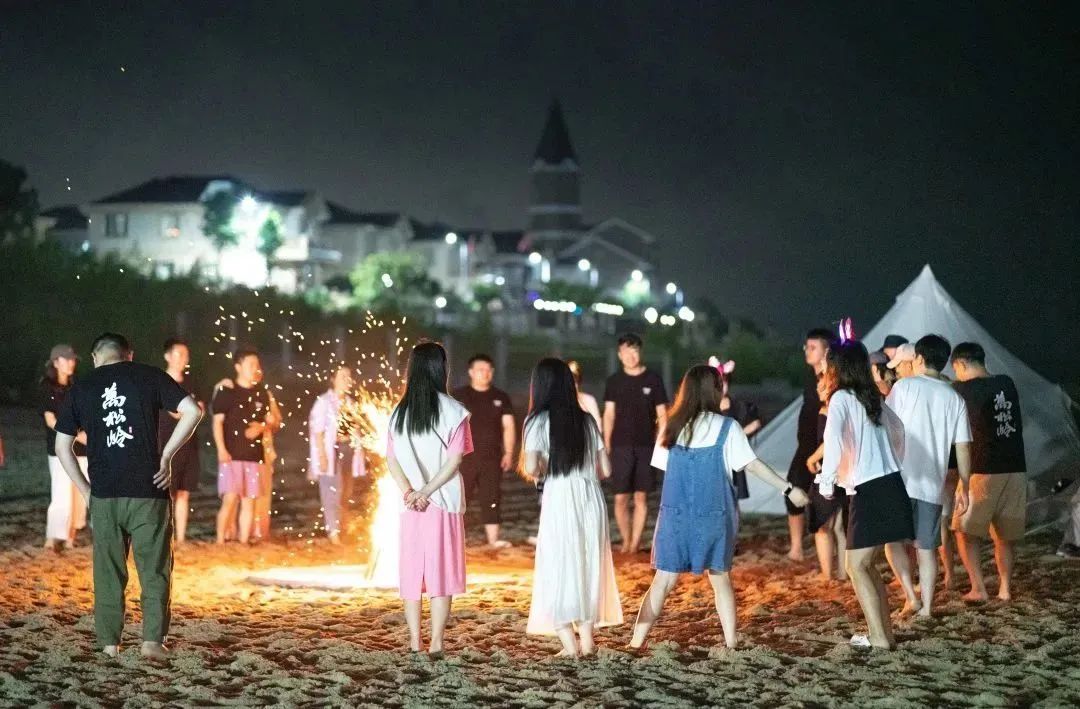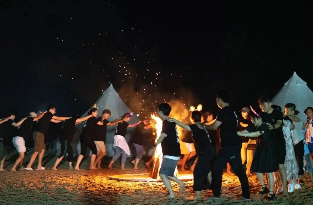 待雨停歇,夜幕恰好降臨,是時候燃起沙灘篝火,大家伙以手搭肩圍成一圈,統(tǒng)一節(jié)奏跳一支移動版兔子舞,熱鬧開場!接著以篝火為背景板,按個人喜好,分為K歌組和游戲組,究竟誰是隱藏的麥霸?誰又是游戲黑洞?一一揭曉!
